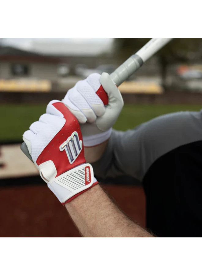 Built for countless innings of play. The Crest batting gloves are stitched with a thick leather palm and dimpled mesh back for flexibility, breathability and longevity.