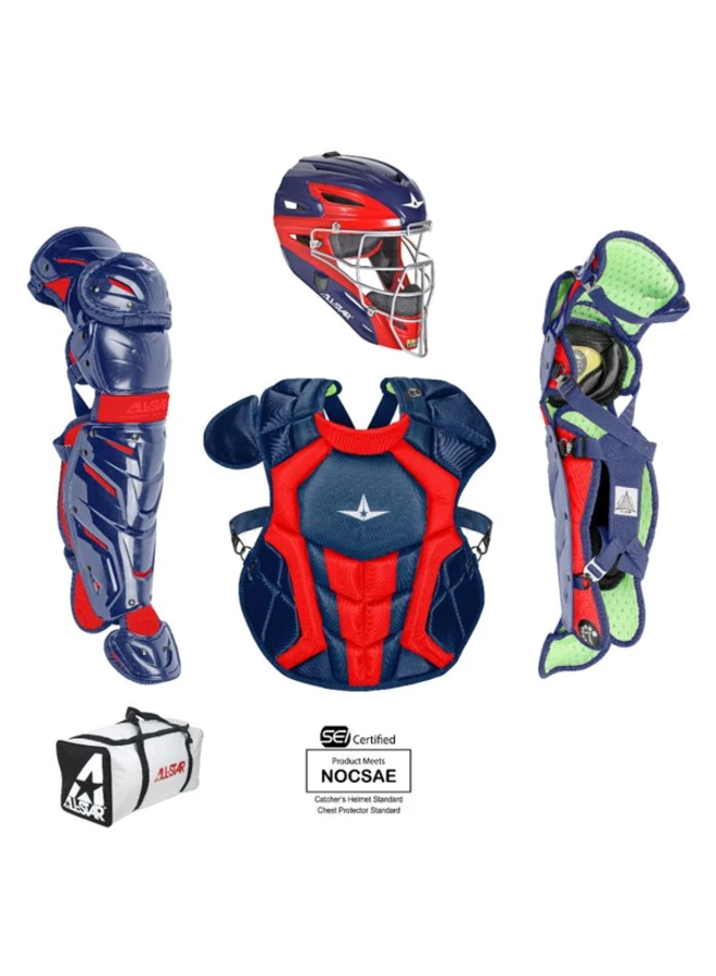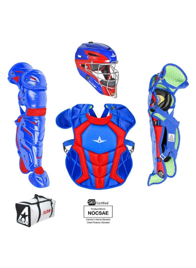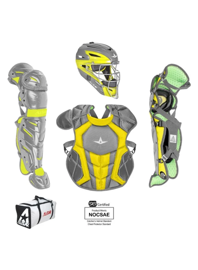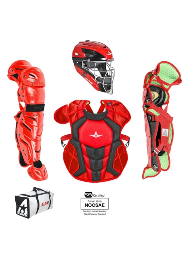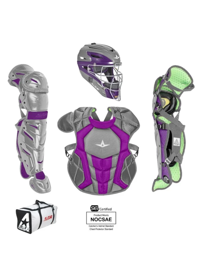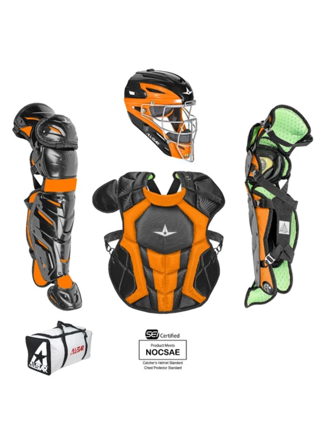 The CKCC1216S7X, Intermidiate System Seven Axis catching kit includes all of the top gear any elite player is looking for! Included is a MVP2500-GTT Graphite Two-Tone Catching Mask, CPCC1216S7X Chest Protector, and LG1216S7X Leg Guards. This set is recommended for any serious ball player who demands high function and performance from their gear.