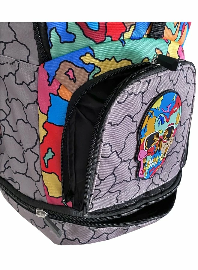 Crack skull Bat Bag, The perfect bag for the field..incredibly spacious it can fit all your gear, extra accessory pockets including designated pockets for cleats and your helmet! Two strap in bat pockets & a hanging clip to hang your bag on any chain link fence for convenience .